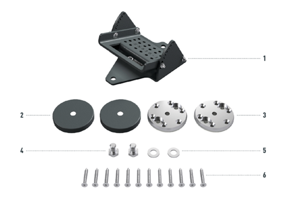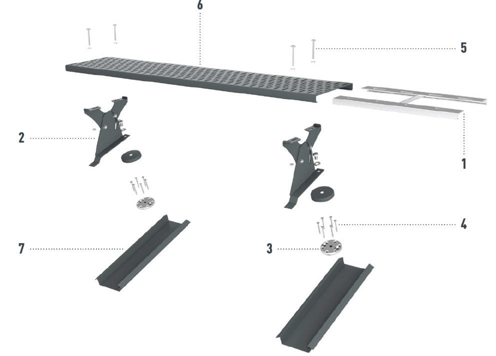 • Kluczem dynamometrycznym za pomocą dołączonych wkrętów z łbem sześciokątnym i podkładek przykręć stopień kominiarski do podstaw. Moment obrotowy 35 Nm (rys. 5).