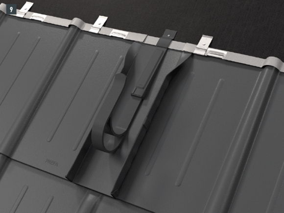 W przypadku wszystkich systemów dachowych PREFA konieczne może być zamontowanie blachy podkładowej (np. jeśli w obszarze powierzchni montażowej znajduje się rąbek lub grzbiet fali).