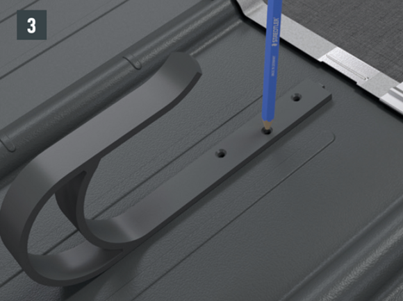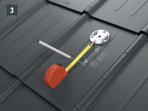 • Zaznacz położenie otworów na pokryciu dachowym PREFA (rys. 3).