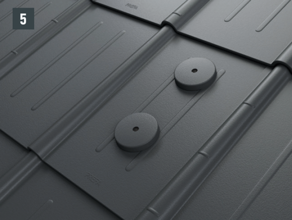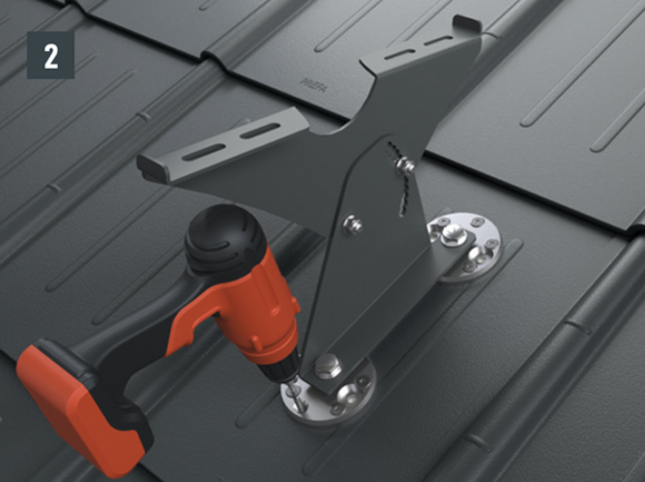Głębokość osadzenia oryginalnych wkrętów mocujących w konstrukcji nośnej (krokwiach) musi wynosić co najmniej 80 mm. W przypadku dachówki romb 29 × 29, dachówki romb 44 × 44 oraz dachówki łupkowej wymagany jest montaż blachy podkładowej.