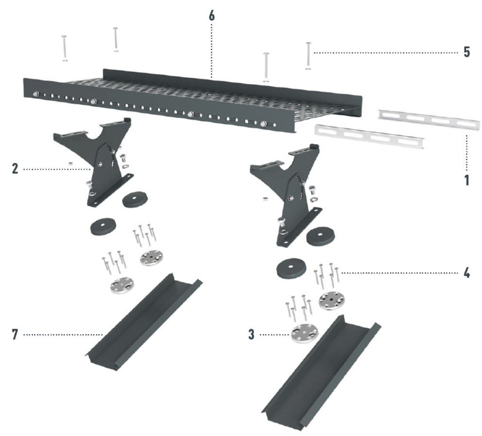 • Ławy kominiarskie przymocuj do min. dwóch wsporników za pomocą dołączonych 4 szt. śrub specjalnych M6 × 60 mm, nakrętek młoteczkowych i podkładek PE.