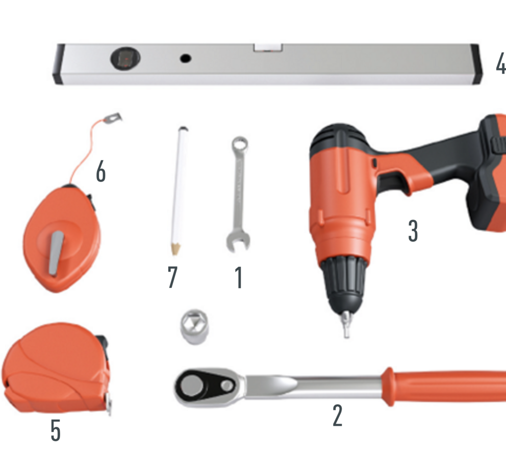 3 uniwersalny wkręt do drewna, 8 × 220 mm (dach o konstrukcji podwójnej) lub 8 × 120 mm (dach o konstrukcji pojedynczej)