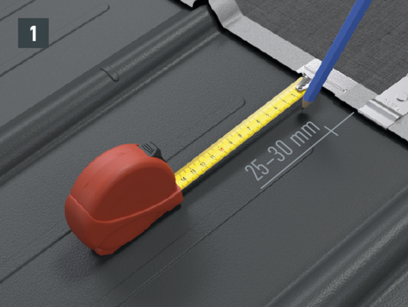 • Zaznacz krokiew i krawędź górną haka dachowego (25–30 mm) (rys. 1).