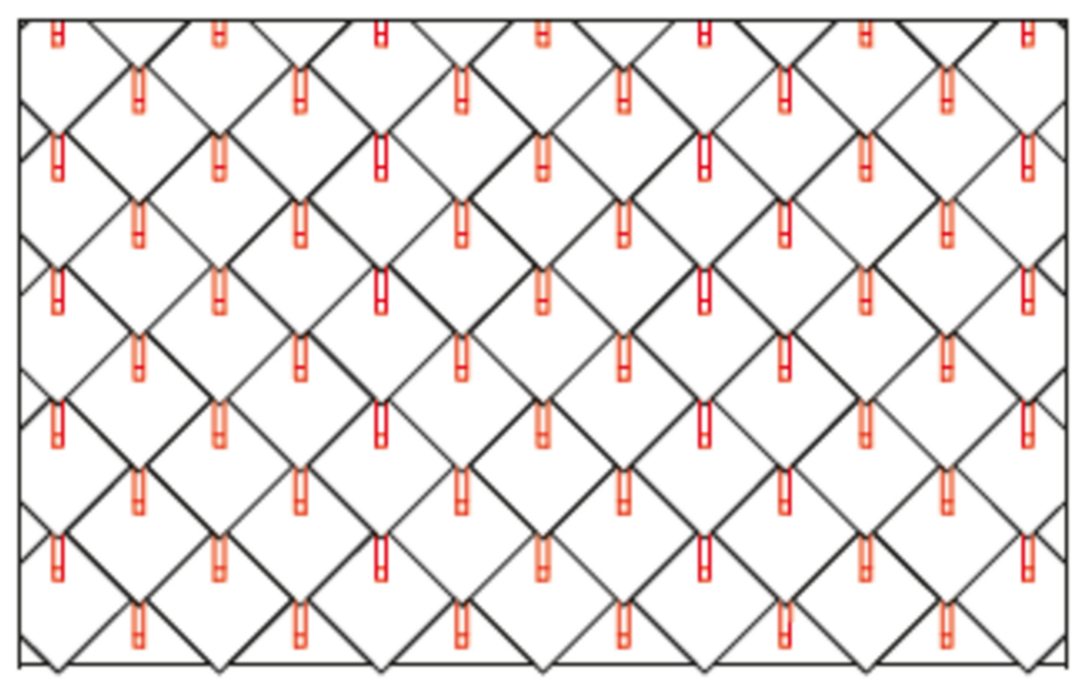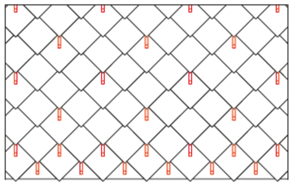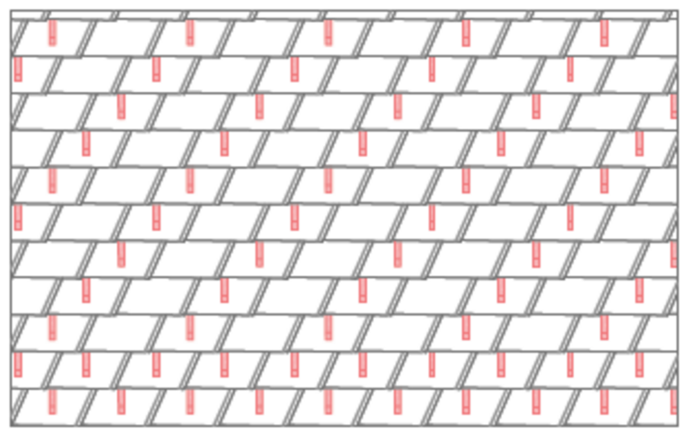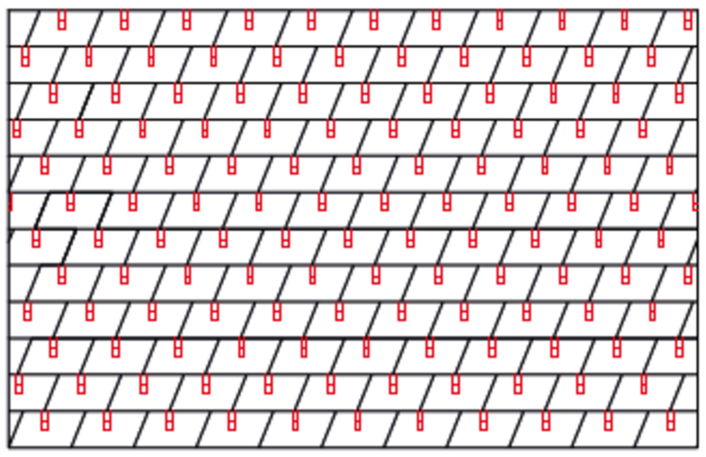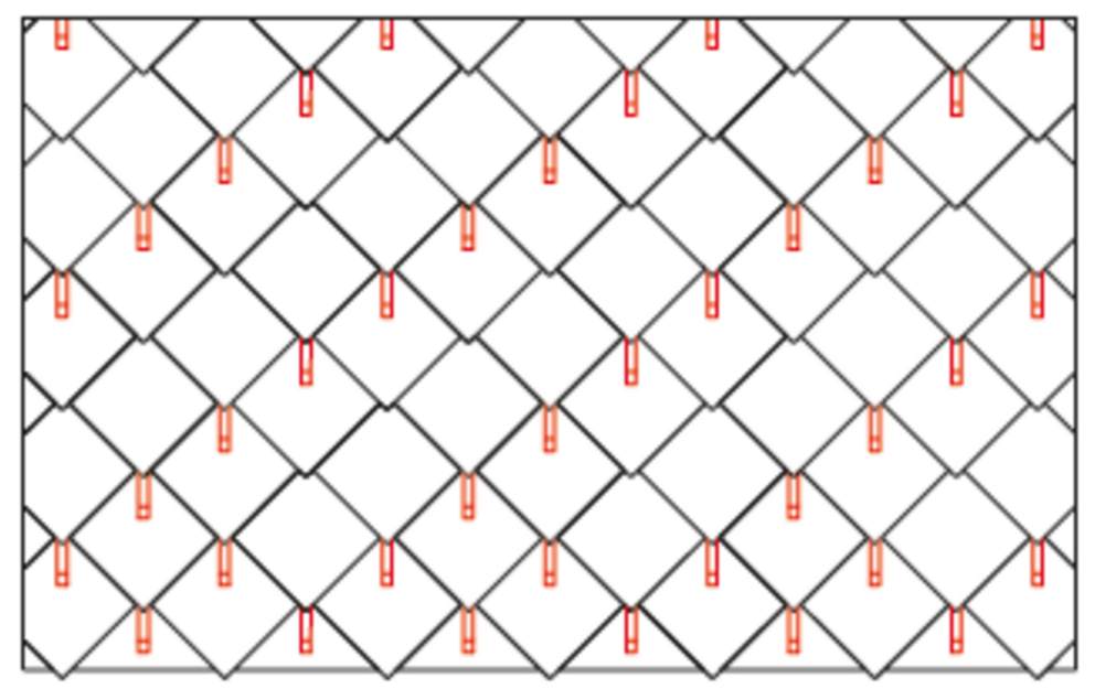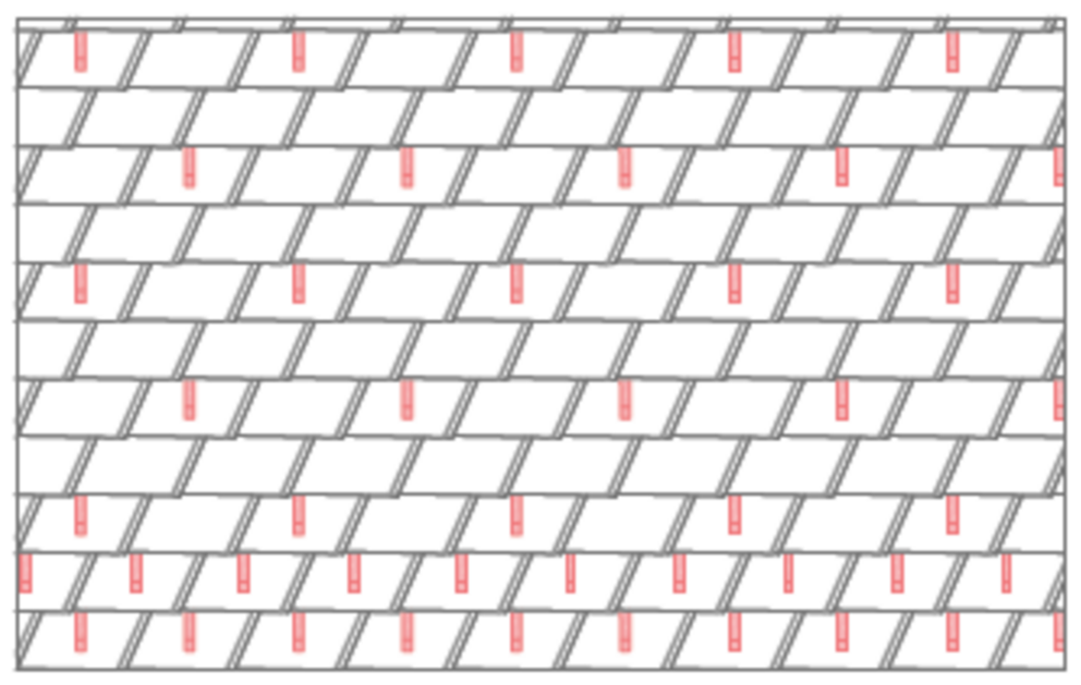 W przypadku dachówki romb 29 × 29 montuje się 3, 6 lub 12 szt. stoperów śniegowych na m² (patrz tabela poniżej – schemat układania DR1, DR2 i DR3). Pierwsze dwa rzędy muszą zostać na całej długości wyposażone w stopery śniegowe.