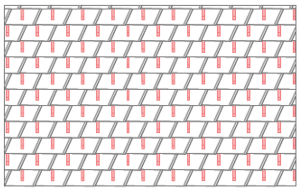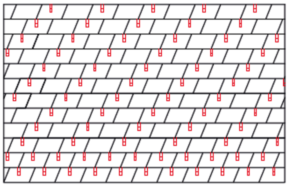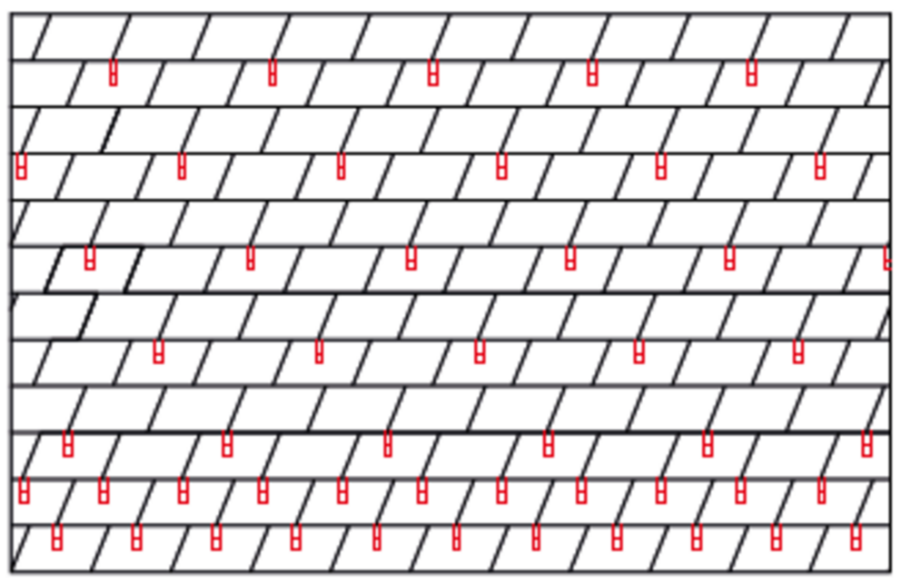 Panele dachowe FX.12 zasadniczo układa się nieregularnie, z przesunięciem pionowego rąbka kątowego wynoszącym min. 220 mm. Ze względu na dowolność przesunięcia paneli dachowych FX.12 nie można uzyskać symetrycznego schematu układania. Jeśli planuje się montaż stoperów śniegowych do FX.12, zaleca się ułożenie paneli dachowych FX.12 z regularnym przesunięciem. Zakłóca to efekt nieregularności, który w przypadku paneli dachowych FX.12 jest pożądany, jednak jedynie regularny schemat układania pozwala na zastosowanie stoperów śniegowych.