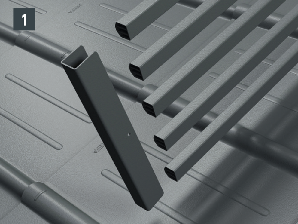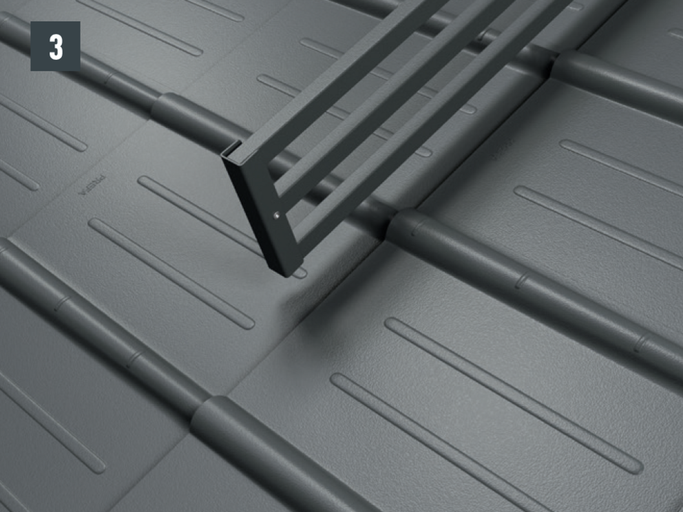Montaż systemu barier śniegowych XL jest możliwy wyłącznie na podłożu stałym, równym i na całej powierzchni. |