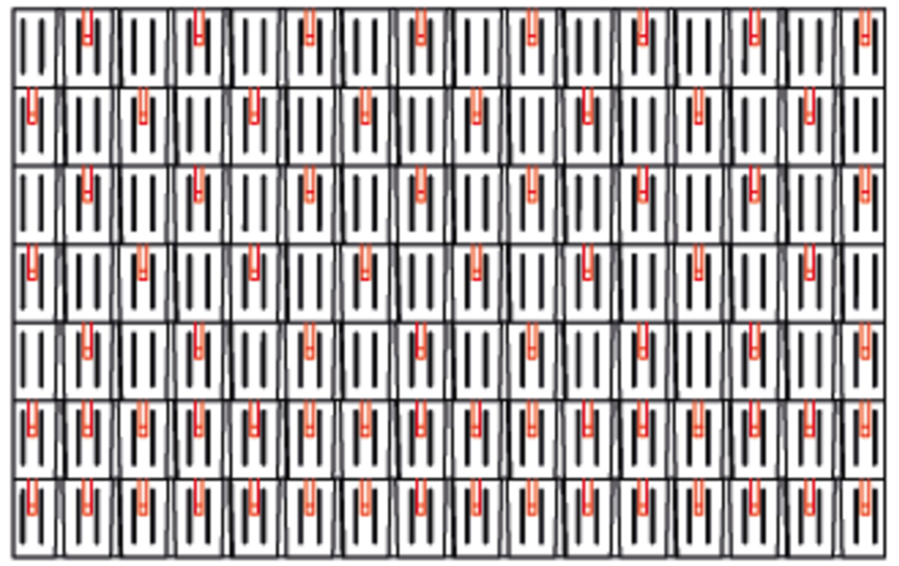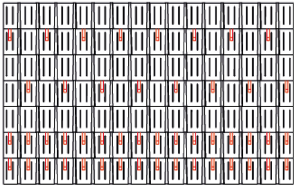 W przypadku dachówki R.16 montuje się 1,7, 3,4 lub 6,8 szt. stoperów śniegowych na m² (patrz tabela poniżej – schemat układania R.16 1, R.16 2 i R.16 3). Pierwsze dwa rzędy muszą zostać na całej długości wyposażone w stopery śniegowe.