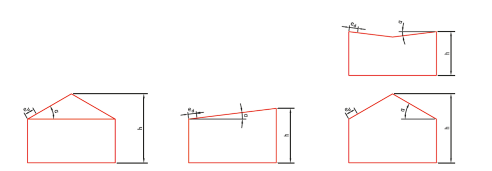 ed = wymiar odległości na połaci dachu; ed= (e/10) / (cos)
