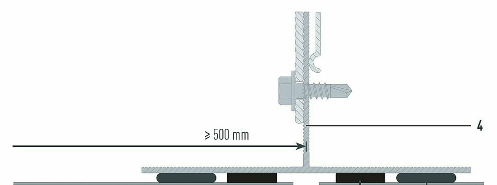 Aby umożliwić rozszerzanie się materiału, nie wolno stosować nośnych profili konstrukcji nośnej o długości powyżej 3000 mm. Należy pamiętać, aby profile konstrukcji nośnej nie były łączone w obrębie jednej płyty, ponieważ tworzy to sztywne połączenie.