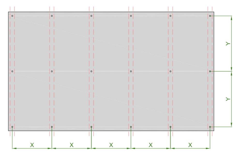 Otwór jest większy niż średnica wkrętu do metalu. Wszystkie otwory montażowe w płycie są wstępnie nawiercane wiertłem ⌀ 9,5 mm. W podkonstrukcji zawsze wykonuje się wstępny otwór o średnicy ⌀ 5,1 mm. Tylko w ten sposób punkt przesuwny jest w stanie kompensować rozszerzalność materiału płyty pod wpływem temperatury.