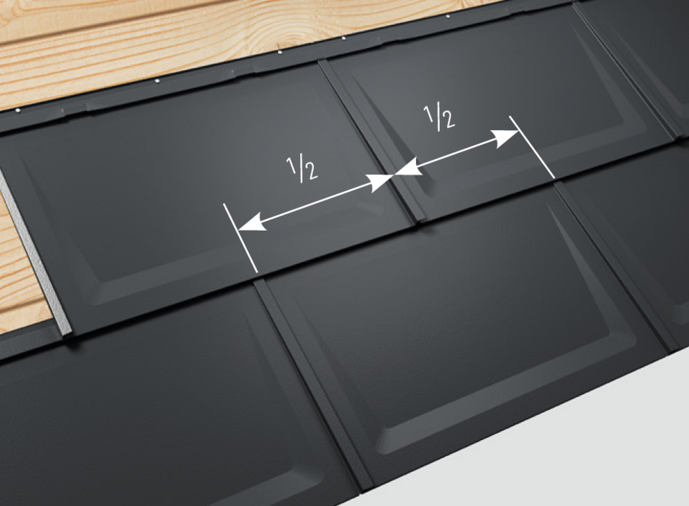 Dachówki R.16 układane są zawsze z przesunięciem w kolejnych rzędach. Aby układanie z przesunięciem o 1/2 było łatwiejsze, na górnym rąbku dachówki R.16 zaznaczony jest jej środek.