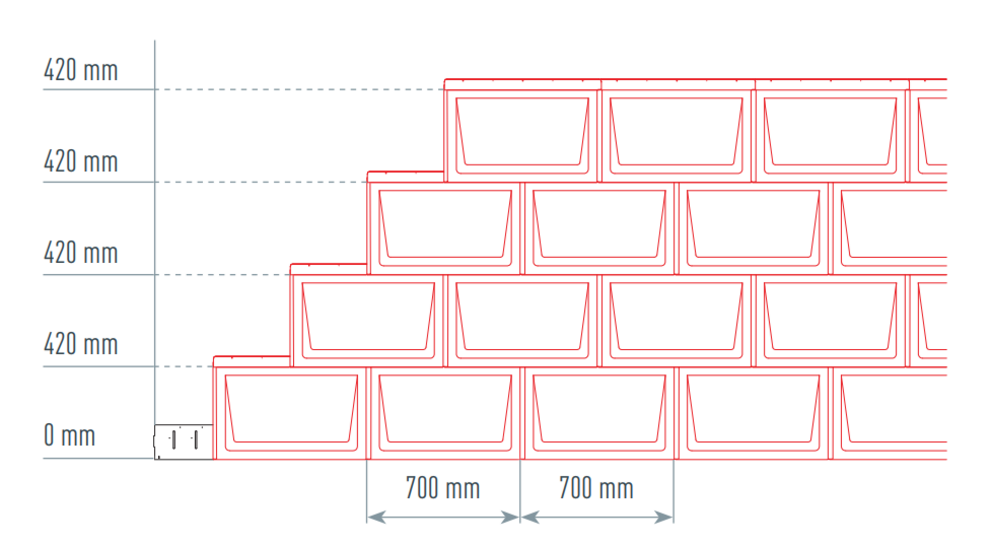 Trasowanie pionowe: 700 mm (co drugi rząd przesunięty o 350 mm)