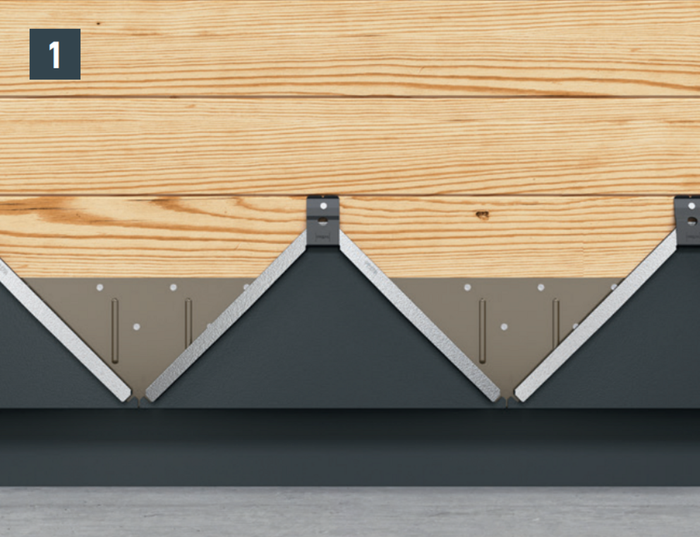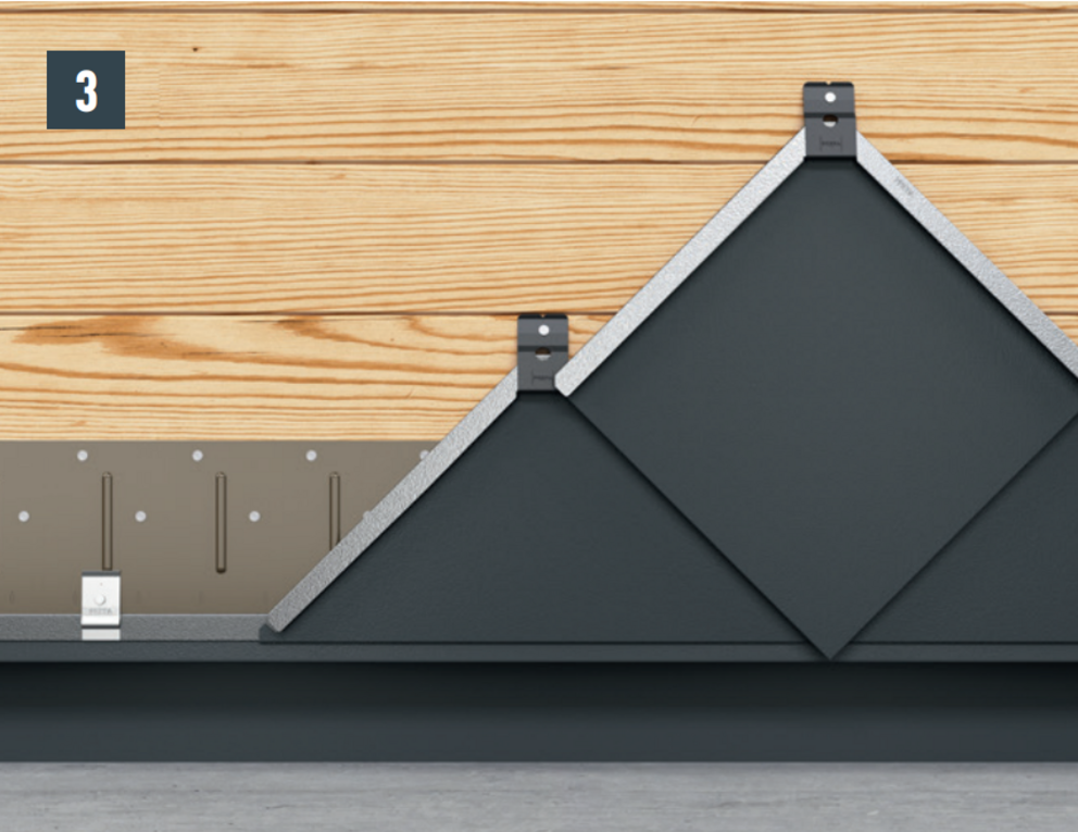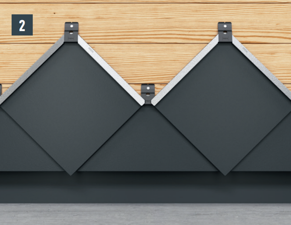 Pojedynczy romb elewacyjny 29 × 29 mocuje się za pomocą jednego zaczepu i jednego dołączonego gwoździa 2,8/25.