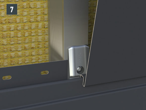 Odległość między klipsem do zabezpieczeń burzowych a piórem sidingu ma decydujące znaczenie dla swobodnego montażu i rozszerzalności materiału. Dlatego też klipsy do zabezpieczeń burzowych należy montować wyłącznie z odpowiednim elementem mocującym, aby zapewnić stałą odległość.