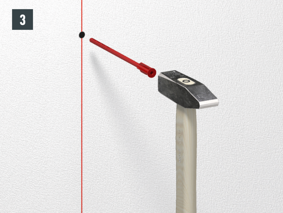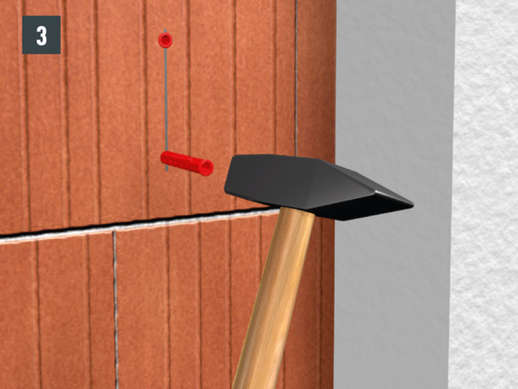 • Wbić dybel do obejm, tak aby jego końcówka przylegała do elewacji (rys. 3).