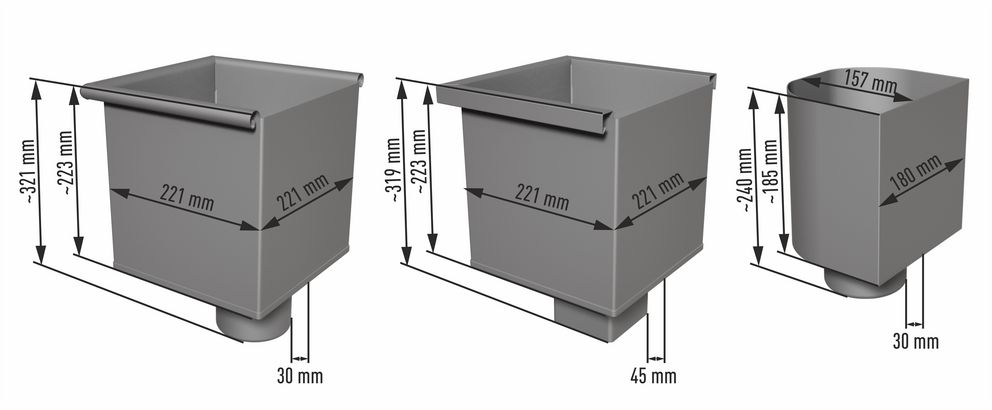Kosze zlewiskowe należy zamocować do fasady za pomocą ele mentów dobranych do rodzaju zastanego podłoża.