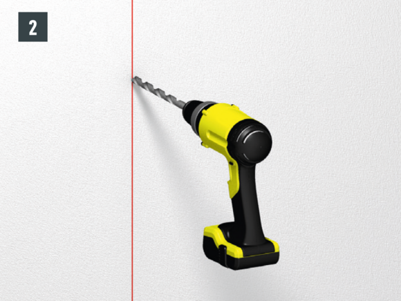 • Ustalić i zaznaczyć pozycję elementu mocującego obejmy. Pamiętać o wyrównaniu w pionie i montażu w jednej linii (rys. 1).