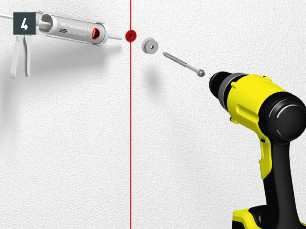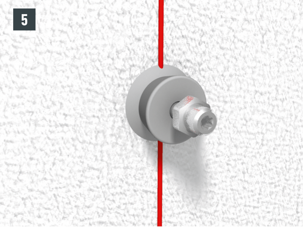 Nadaje się do osadzania w betonie, cegłach i drewnie. Długość trzpienia 140/200/330 mm. Zaznaczyć położenie otworu, nawiercić wiertłem o Ø 5 mm, nasunąć nasadkę i przykręcić za pomocą TX 25.