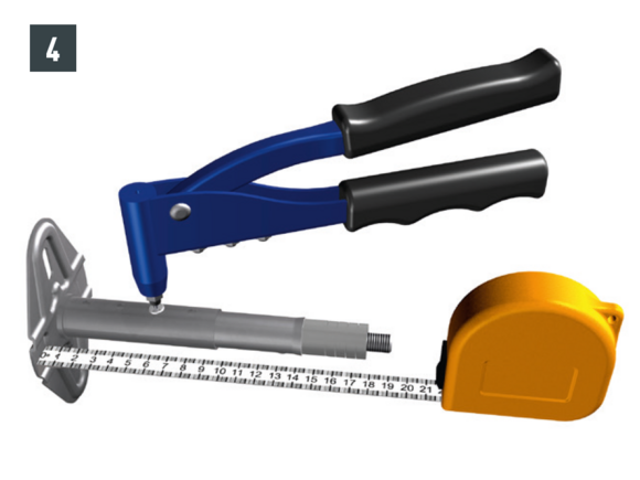 • Element mocujący obejmy dopasować do grubości izolacji i zabezpieczyć dołączonym nitem o Ø 4 mm (rys. 4).