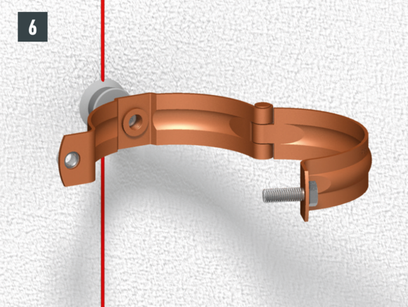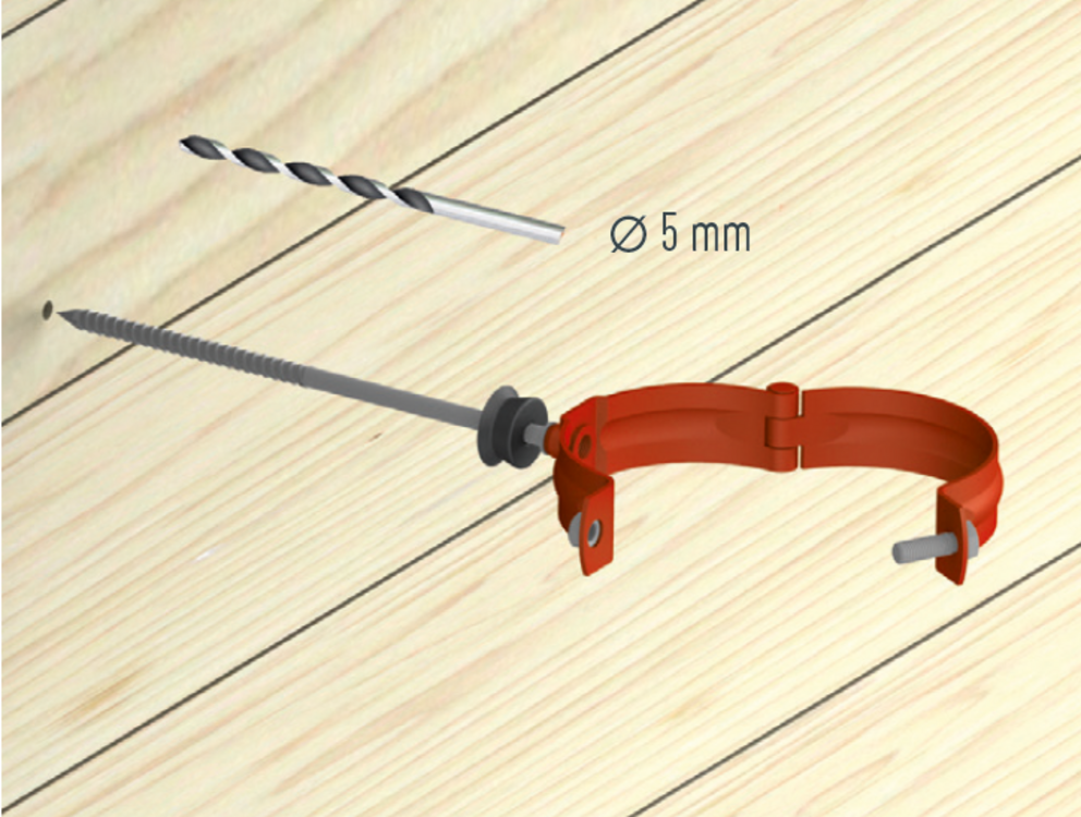 Do montażu rur spustowych stosuje się obejmy. Rodzaj elementów do mocowania obejm należy dobrać do podłoża (powierzchni elewacji).