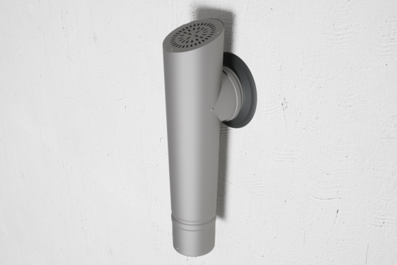 Odległość pomiędzy rurą spustową PREFA a gotową elewacją musi wynosić co najmniej 20 mm. W przypadku montażu rury kwadratowej zachować min. 45 mm odstępu pomiędzy rurą a ścianą.