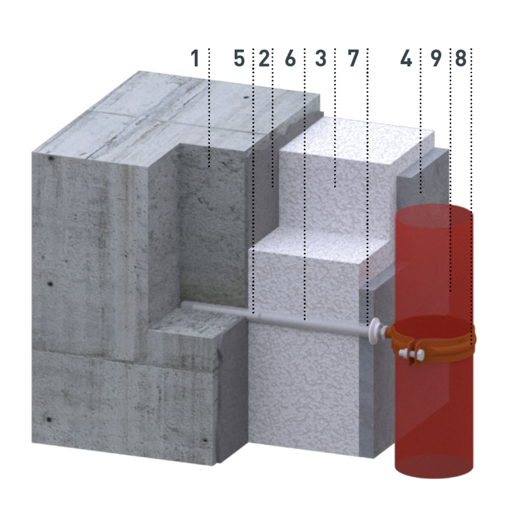 • Obejma zamontowana w gotowym systemie ociepleniowym ETICS (rys. 8).